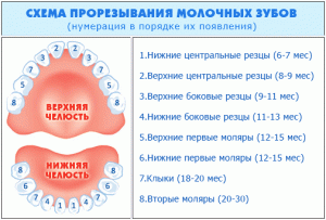 Схема прорезывания молочных зубов
